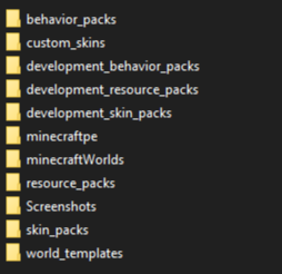 behavior_packs,resource_packs และ skin_packs จะเก็บเนื้อหาแบบกำหนดเองที่จะถูกเพิ่มเข้าไปใน
